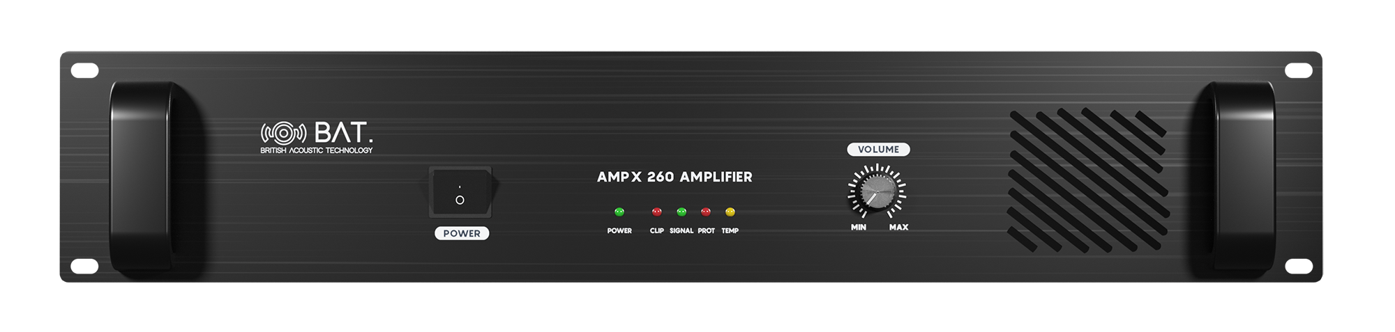 AMPX II is BAT’s two channel high efficiency power amplifier series, developed for reliable performance in multi zone and distributed audio systems. Available in 2 by 260W, 2 by 360W, and 2 by 500W configurations, the series powers up to two independent zones from a single unit. Support for 70V and 100V systems as well as 4 to 16 Ohm speaker loads enables flexible system design. Housed in a robust 2U rack mount chassis, AMPX II integrates intelligent protection, efficient cooling, and flexible connectivity. It is ideal for commercial spaces, hospitality venues, and institutional facilities requiring scalable and dependable amplification.